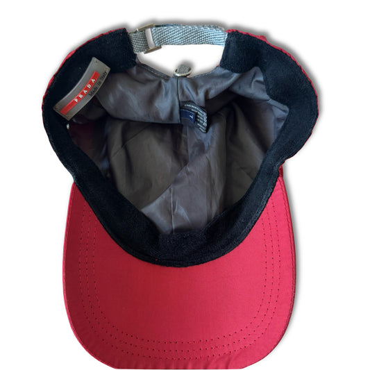 2000s PRADA SPORT RED TAB 6 PANEL BASEBALL CAP (L)